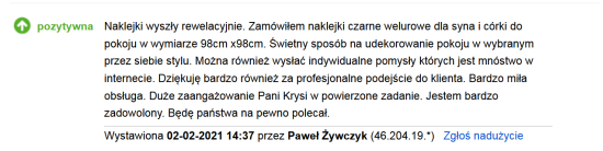 bardzo dziękuję za wykonane zamówienie - na pewno będziemy do Państwa wracać i polecać innym.