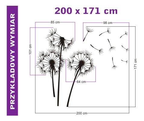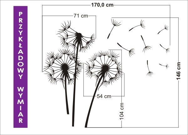 2. Wzór dmuchawca można użyć na ścianie, szafie, drzwiach. Można wypełnić go farbą, tynkiem w różnych kolorach jak również spryskać sprayem na szybie.