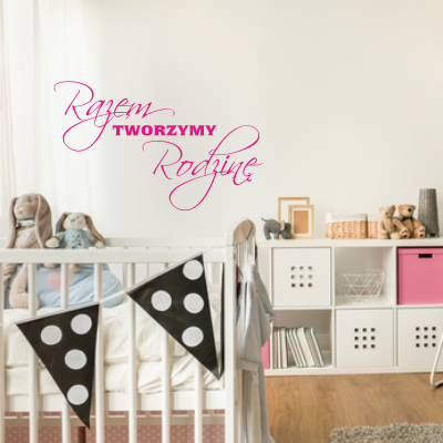 Razem tworzymy rodzinę - welurowy napis w formie naklejki ścienne do salonu lub pokoju dziecka, wszędzie tam, gdzie masz wolne miejsce pokryte farbą lateksową.