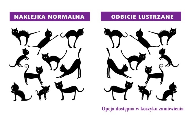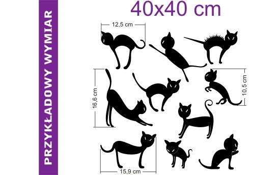 5. W zależności od tego, ile masz miejsca i jaką dysponujesz wolną powierzchnią, wybierz najbardziej odpowiadający Ci wymiar kotów. Im większy wzór weluru, tym cena jest wyższa. Nalepki możesz zamontować na każdej płaskiej, suchej i czystej powierzchni, typu: ściana, meble, okno, drzwi, lodówka, biurko, szafa z płyty MDF, laptop, itp.