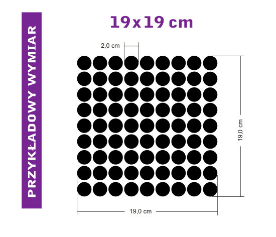 19x19 cm - średnica kropki 2 cm - cena 18 zł,